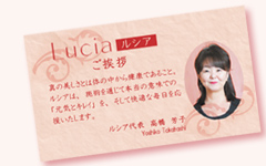 ルシアは、施術を通じて本当の意味での「元気とキレイ」を、そして快適な毎日を応援いたします。